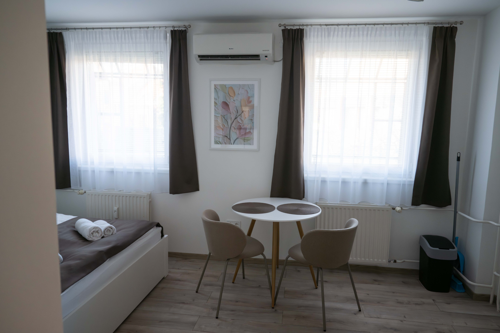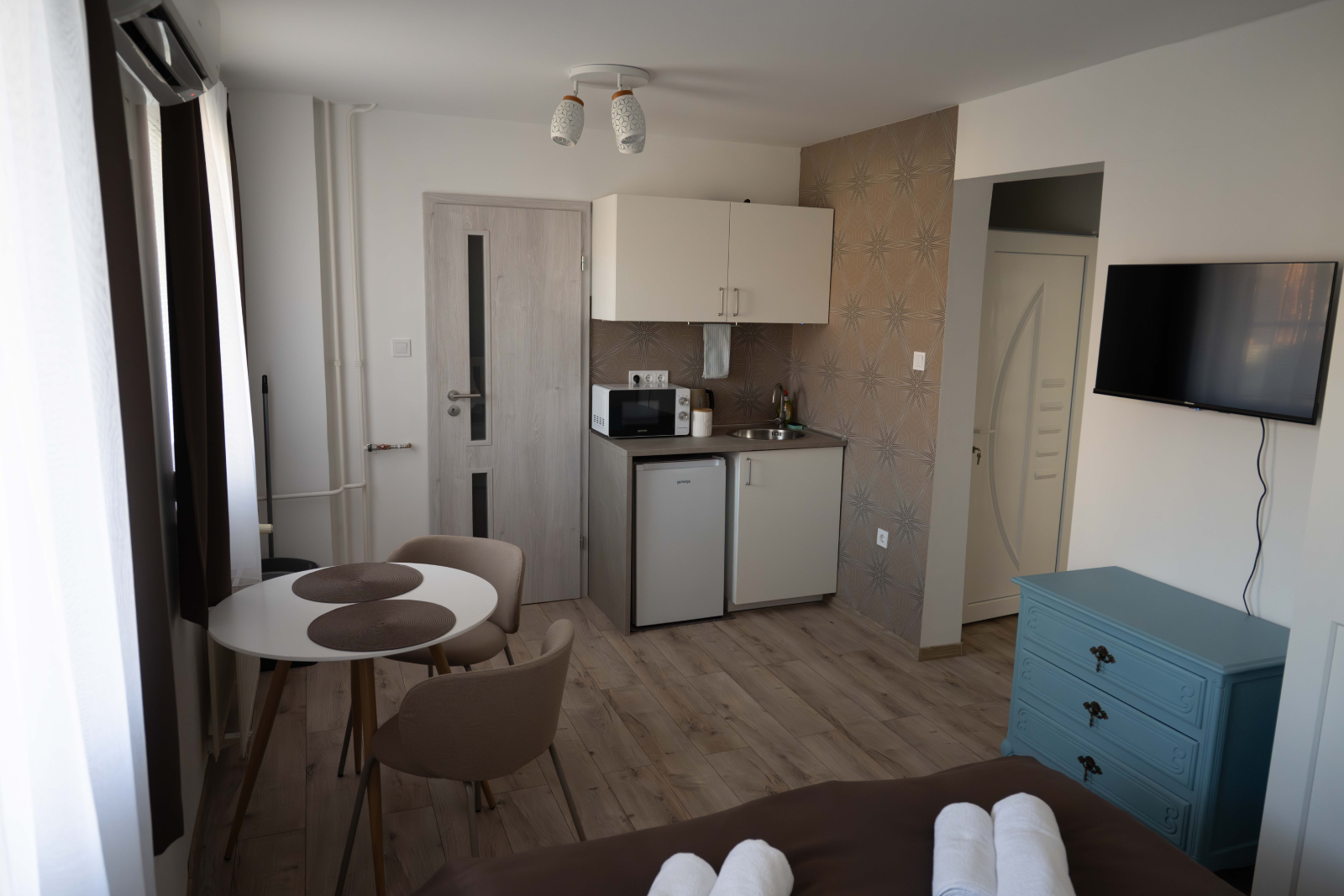 Ruhaszárító állvány és apró, átgondolt részletek teszik komfortossá a hosszabb tartózkodást is.